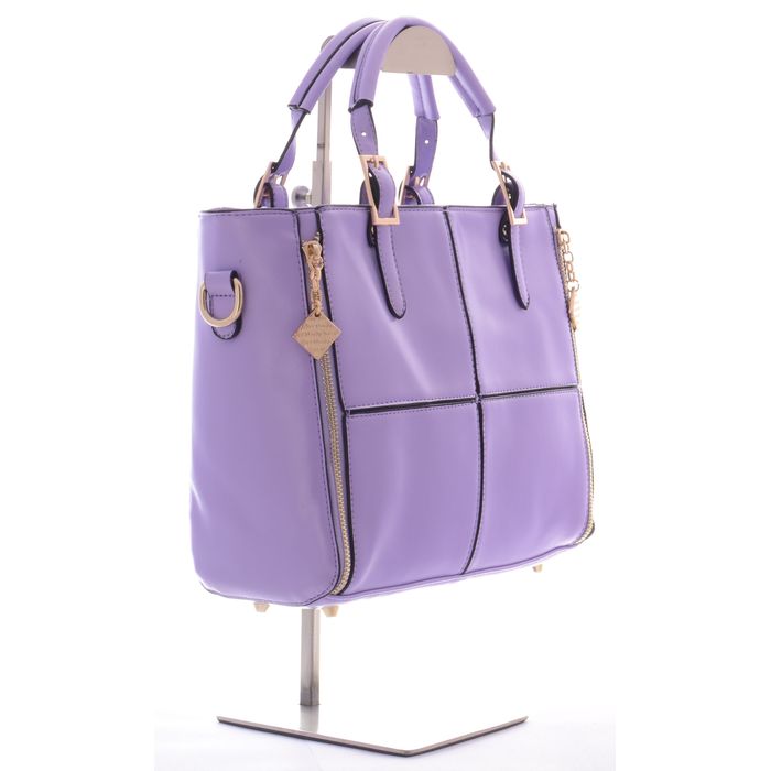 Сумка женская из искусственной кожи, закрывается на молнию. Внутри одно отделение, в котором два кармана на молнии, один открытый и карман для сотового телефона и портмоне. Снаружи на задней стенке карман на молнии. Модель имеет две ручки, высота которых регулируется от 9 до 12 см и длинный ремень.