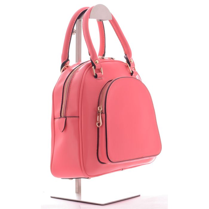 Сумка женская из натуральной кожи, закрывается на молнию. Внутри одно отделение, в котором с одной стороны карман на молнии, с другой карман для сотового телефона и портмоне. Снаружи на передней стенке карман на молнии. Модель имеет две ручки высотой 12 см и длинный ремень.